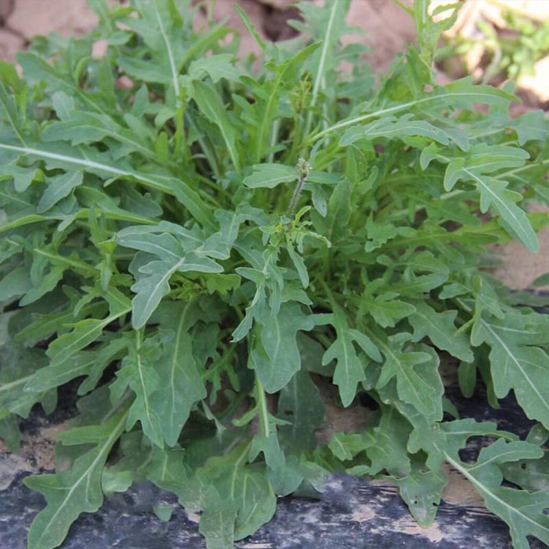 原产意大利,属十字花科,芝麻属。芝麻菜一年生草本植物,直根发达,根系入土深,成株株高30~40厘米,茎圆形,上有细茸毛,茎粗0.2~0.4厘米,叶羽状,深裂,叶缘波状,叶长10~15厘米,宽5~8厘米,叶柄长5~7厘米;花黄色。喜温暖冷凉湿润的气候,抗盐碱耐旱涝,耐寒性较强。