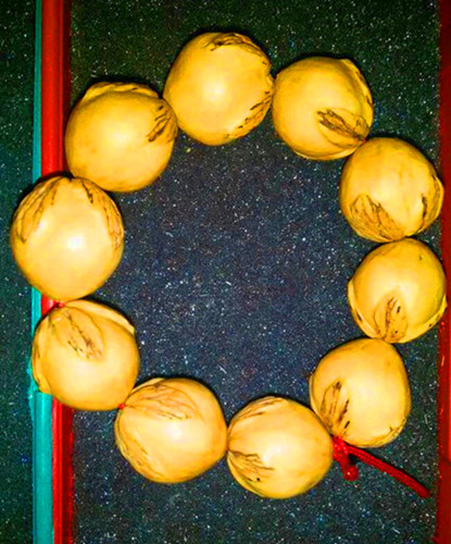 2. 果壳硬度高,果皮颜色深。我公司供应的猴头核桃都采自家果园。我们坚持的原则是,成熟一棵采摘一棵,绝不提前下树,以保证猴头核桃个个成熟、粒粒饱满,为客户后续加工制作珠串、核雕等工艺美术精品奠定坚实基础。