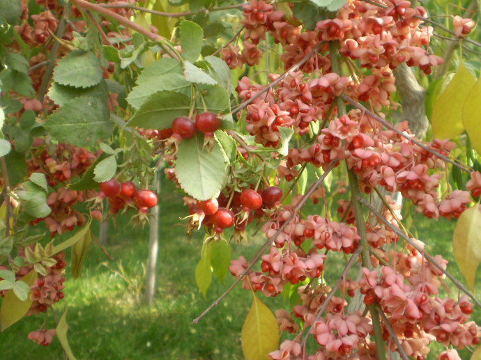 丝棉木的超强适应性来源于几个方面:一是丝棉木不是直根系,而是有发达的须根,所以在盐碱地上生长基本不受影响,具有很好的适应性。作为绿期长的小乔木,将丝棉木用作园路行道树是个不错的选择,既可看叶又可观果。
