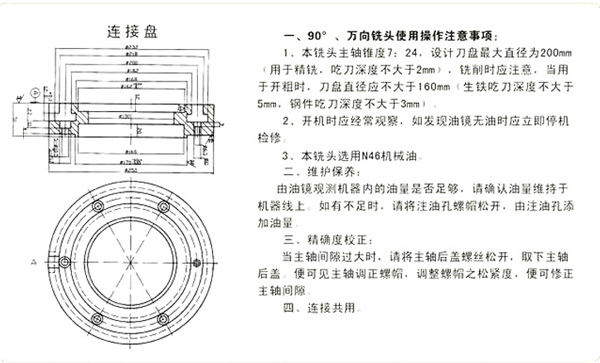 镗铣头适用于单件小批量生产性质的冶金、矿山、机械通用机械的大型机架和箱体的加工,如镗孔、钻扩孔、刮平面及用铣刀进行铣销加工、镗铣头与主体、床身、滑台配合组成落地式镗铣床。镗铣头的主轴部分有方滑枕的支持,增强了铣削时的刚性,适应于大型零件的强力铣削,方枕的伸出提高了接近工件加工面的性能,同时也对镗轴起支承作用,增强了镗削时的刚性,在方滑枕的端部,适合安装各种加工附件(如安装直角铣头、铣马盘、钻孔等附件)进行平面和垂直的铣削、镗孔、钻孔等加工、本镗铣头配有直角铣头、平旋盘。