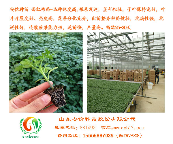 山东安信种苗基地本着“质量至上, 服务于民”的一贯宗旨,为种苗界及广大菜农朋友不间断提供最优质的嫁接西红柿苗,是济南及周边地区规模最大、设施最完善、技术最领先、售后服务最周到的现代化育苗工厂。
