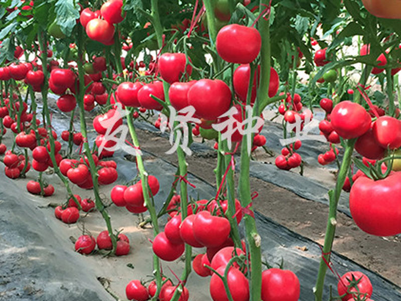 吉祥1601—无限生长,植株旺盛,中早熟,连续坐果能力强,果实圆型,成熟果粉红靓丽,转色均匀,皮厚耐裂、硬度高,单果重240-350克,高抗TY病毒(番茄黄化曲叶病毒),抗镰刀菌冠状根腐病、枯萎病、黄萎病等,适宜早春、秋延及越冬保护地栽培。 寿光市友贤种业有限公司成立于2005年,位于中国蔬菜之乡-山东省寿光市,办公占地30亩,同时配有新品种展示、筛育基地100余亩,是一家集科研、试验、示范、推广于一体的蔬菜种子公司。