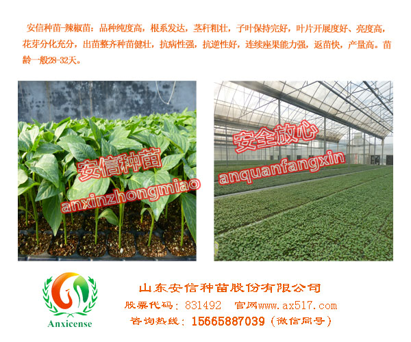 山东安信种苗股份有限公司国内大型蔬菜育苗单位.现在成为蔬菜育苗行业的龙头老大.公司总占地面积500多亩,是全国育苗行业实力最强的种苗企业。辣椒苗,首选安信种苗,让您买的放心,收收获的开心!